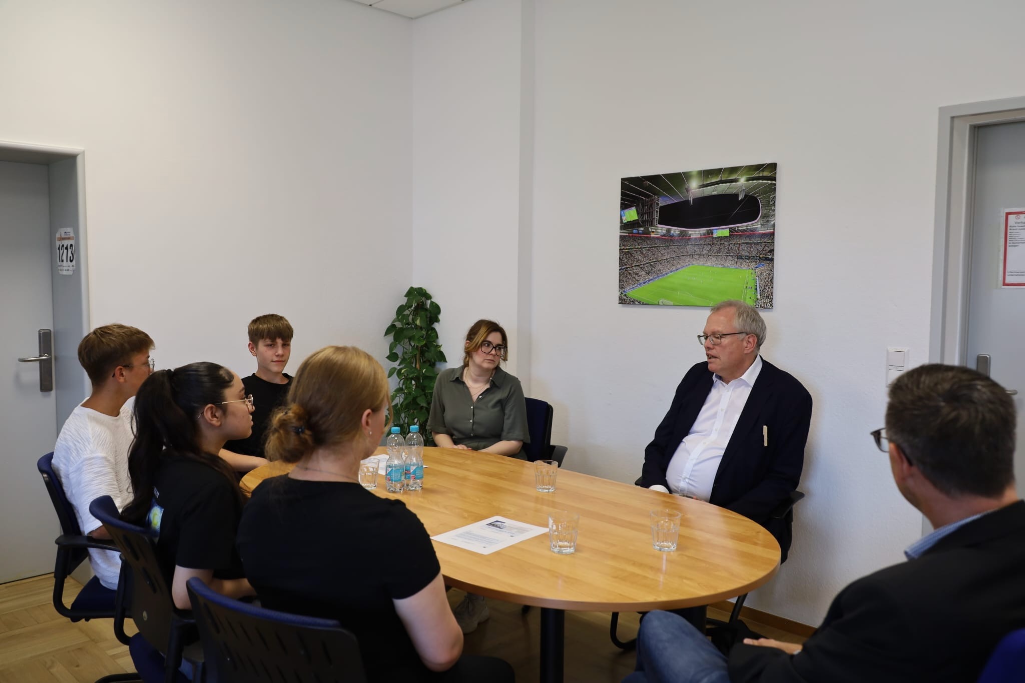 Am Freitag, den 18. Juli 2025, begrüßte die Theodor-Heuss-Schule in Sinsheim den Landtagsabgeordneten Dr. Albrecht Schütte. Gemeinsam mit seiner Assistentin besuchte er die Klassenstufe 9 und kam mit den Schülerinnen und Schülern ins Gespräch über ihre beruflichen Ziele, Wünsche und ihr Erleben des Schulalltags.
